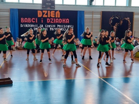 Część artystyczną uświetniły zarówno tańce ludowe, jak i nowoczesne – polka, krakowiak oraz zumba, które spotkały się z dużym entuzjazmem i gromkimi brawami publiczności. Na zakończenie uczniowie wyśpiewali babciom i dziadkom serdeczne życzenia, wyrażając w ten sposób swoją miłość i wdzięczność.