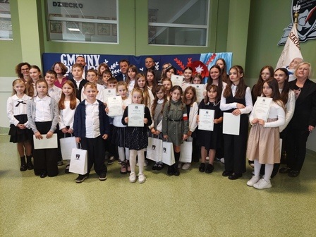 Pan Wójt Roman Drozdek wręczył wszystkim recytatorom pamiątkowe dyplomy, a nagrodzonym upominki w formie kart prezentowych i książek. Pani Dyrektor serdecznie podziękowała uczestnikom i nauczycielom za pracę włożoną w przygotowanie do tegorocznej edycji gminnego konkursu.