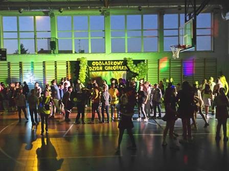 2 października br. z okazji Dnia Chłopaka zorganizowano w naszej szkole odblaskową dyskotekę, w trakcie której uczniowie bawili się w strojach przyozdobionych elementami odblaskowymi. Przeprowadzono również dwa konkursy: na najciekawszy strój odblaskowy oraz odblaskowy tor przeszkód. Najszybsi zostali nagrodzeni odblaskowymi zawieszkami i breloczkami, natomiast najbardziej kreatywni – odblaskowymi szelkami i lampkami (tzw. czołówkami). Ponadto podczas dyskoteki przewodniczący Samorządu Uczniowskiego wręczył każdemu uczestnikowi zabawy pałeczki fluorescencyjne, których zadaniem jest poprawa widoczności pieszych uczestników ruchu drogowego.