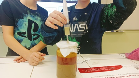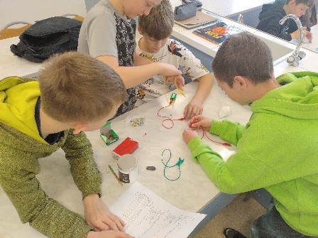 Na początku uczestnicy zajęć poznali sylwetkę Stanisława Staszica – uczonego, geologa i działacza, który odegrał ważną rolę w rozwoju polskiej nauki. Następnie przystąpili do doświadczeń badających właściwości różnych substancji. Sprawdzano, które materiały rozpuszczają się w wodzie, a które przewodzą prąd elektryczny. Praca z próbkami soli, kamienia i grafitu oraz zapisywanie wyników w tabelach pozwoliły wyciągnąć konkretne wnioski. Stało się jasne, że materiały różnią się właściwościami: sól rozpuszcza się w wodzie, kamień jest twardy i odporny na zarysowania, a czysty grafit przewodzi prąd.
