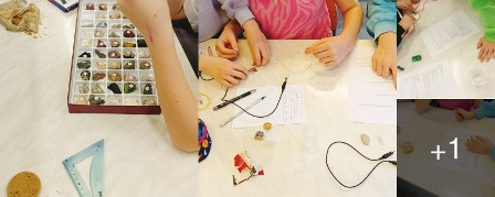 Trzeci etap – „Z czego zrobiony jest świat?” – pokazał, że przedmioty codziennego użytku powstają z wielu surowców naturalnych i przetworzonych. W grupach analizowano budowę kabla elektrycznego, odkrywając obecność miedzi i tworzyw sztucznych, badano telefon jako „skarbnicę pierwiastków” (m.in. szkło z krzemionki, miedź, złoto, lit), a także rozpoznawano materiały wykorzystane do produkcji plecaka szkolnego – tkaniny, elementy plastikowe i metalowe. Każdy zespół przygotował rysunki i zaprezentował swoje obserwacje, rozwijając umiejętność współpracy oraz logicznego myślenia.