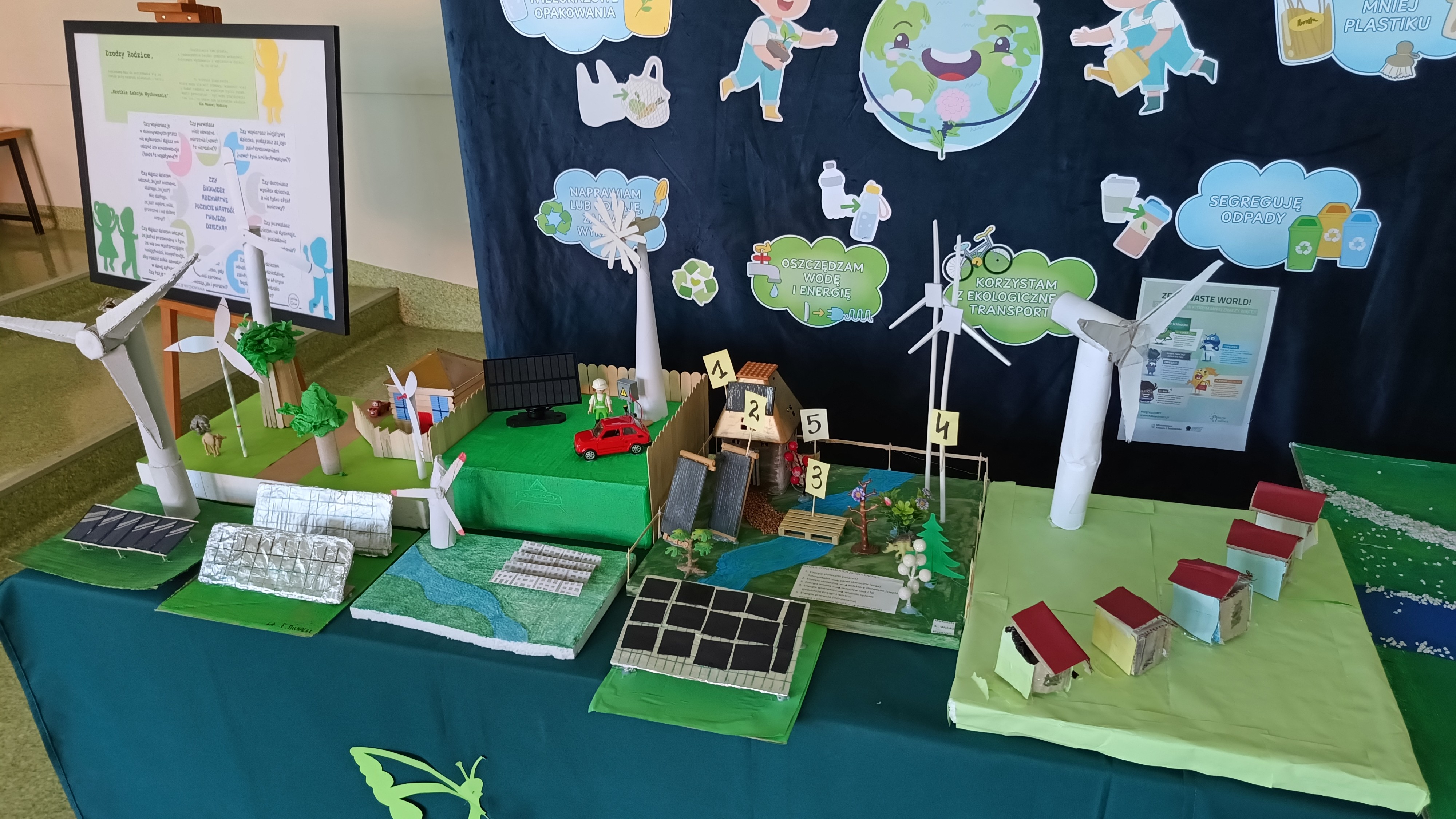 - uczniowie klas 6 i 7 przygotowali modele odnawialnych źródeł energii,