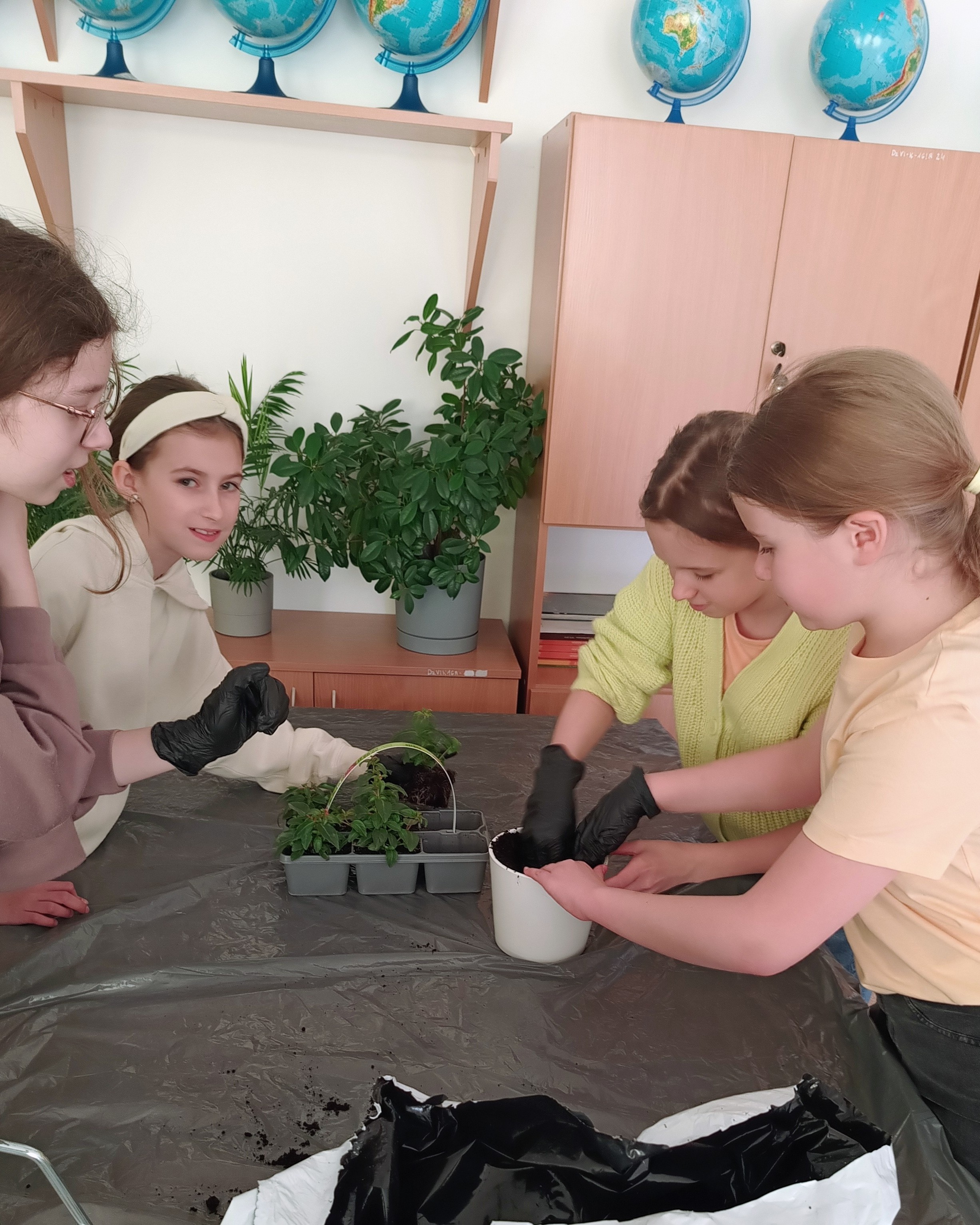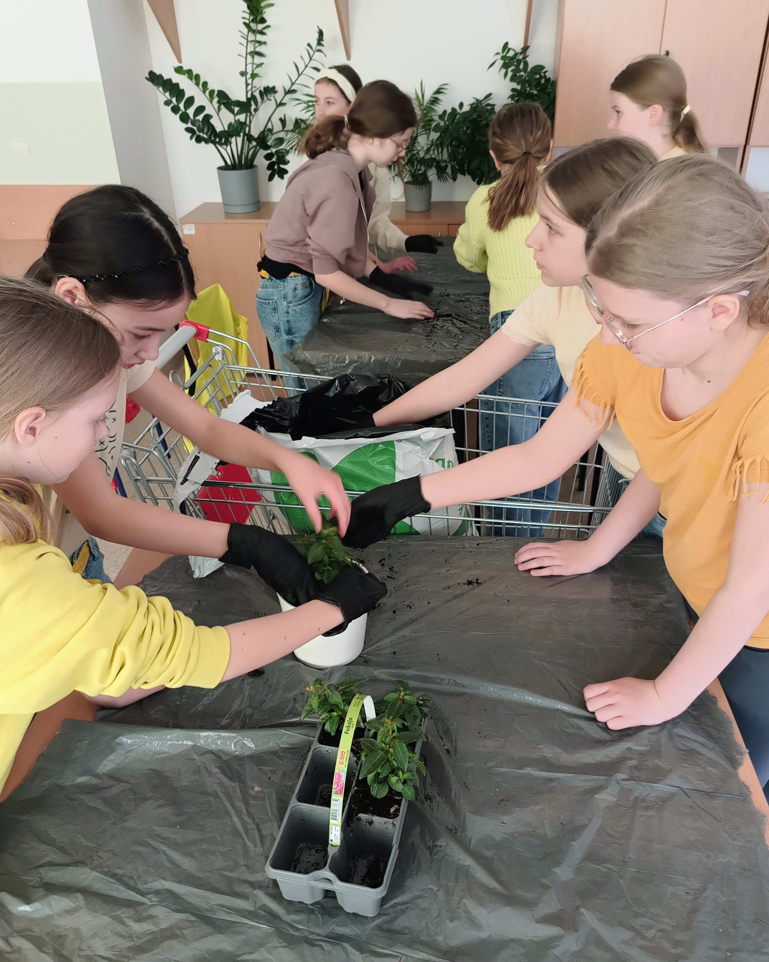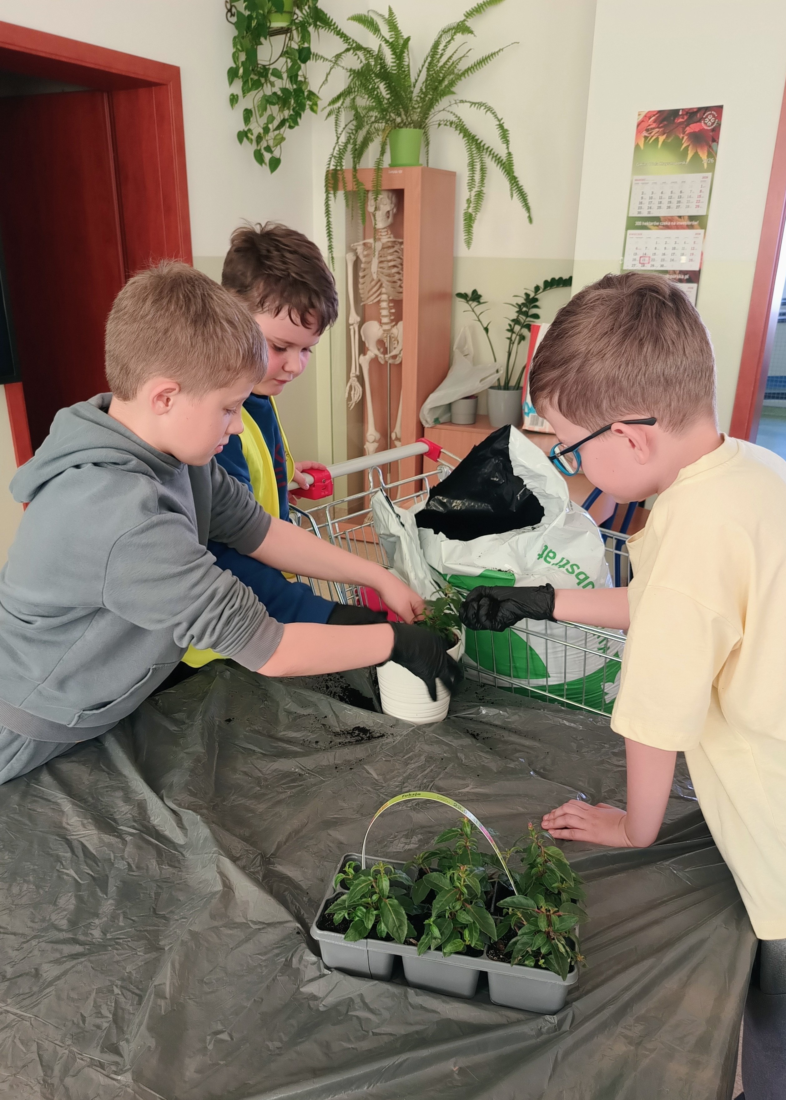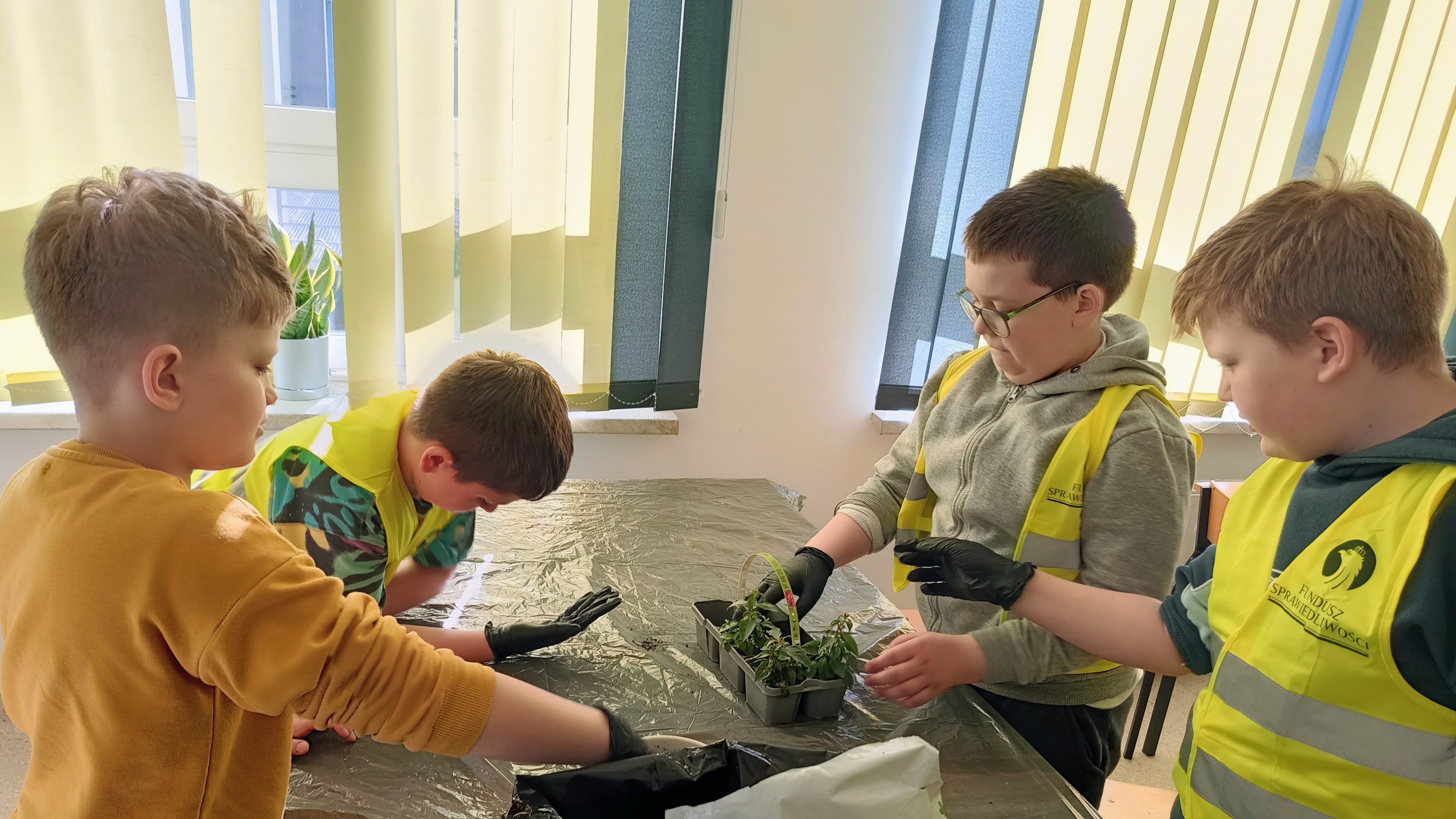 - uczniowie klas czwartych sadzili rośliny doniczkowe,