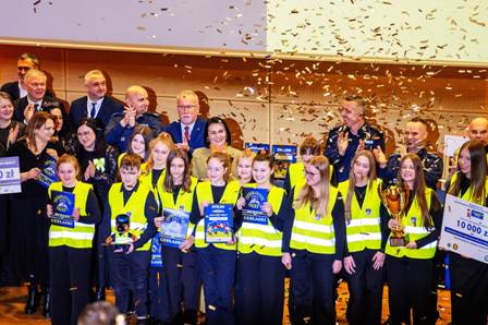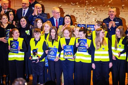 Za nami niezwykły dzień, pełen emocji, wzruszeń i dumy – Finał Gali „Odblaskowa Szkoła", która odbyła się w Solparku w Kleszczowie. Wydarzenie to, podsumowywało działania, które na celu miały troskę o bezpieczeństwo, zdrowie i życie. Jesteśmy ogromnie dumni, że działania naszej szkoły zostały bardzo wysoko ocenione. Stanęliśmy na podium, zajmując w konkursie I MIEJSCE na szczeblu wojewódzkim. Otrzymaliśmy vouchery na łączną wartość 25 000 zł, pamiątkowy puchar, dyplom oraz nową maskotkę łódzkiej Policji – Alexa. Organizatorzy, współorganizatorzy, partnerzy i patroni honorowi zadbali, aby gala miała wyjątkową rangę i oprawę. Najważniejsze było przesłanie, które wybrzmiało najmocniej: MAŁY ODBLASK – WIELKA MOC.