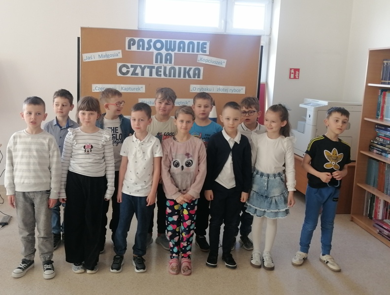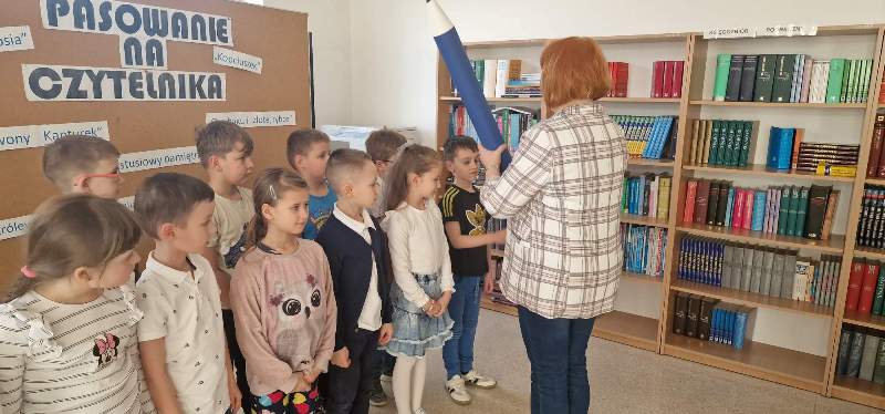 Uroczyste pasowanie na czytelnika biblioteki szkolnej miało miejsce 19.03.2026 r. Klasy I A i I B wraz z wychowawcami odwiedziły bibliotekę , aby wstąpić w poczet czytelników. Po krótkim teście ze znajomości bajek i baśni zostali pasowani przez bibliotekarza na czytelników. Miłym akcentem dnia było zaśpiewanie piosenki , wręczenie pamiątkowych dyplomów oraz wypożyczenie pierwszych książek. To wydarzenie jest jednym z wielu wpisanych w kalendarz uroczystości organizowanych przez bibliotekę szkolną.